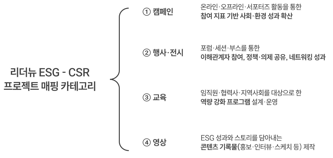 ESG · CSR · 지속가능분야의 활동 전반을
